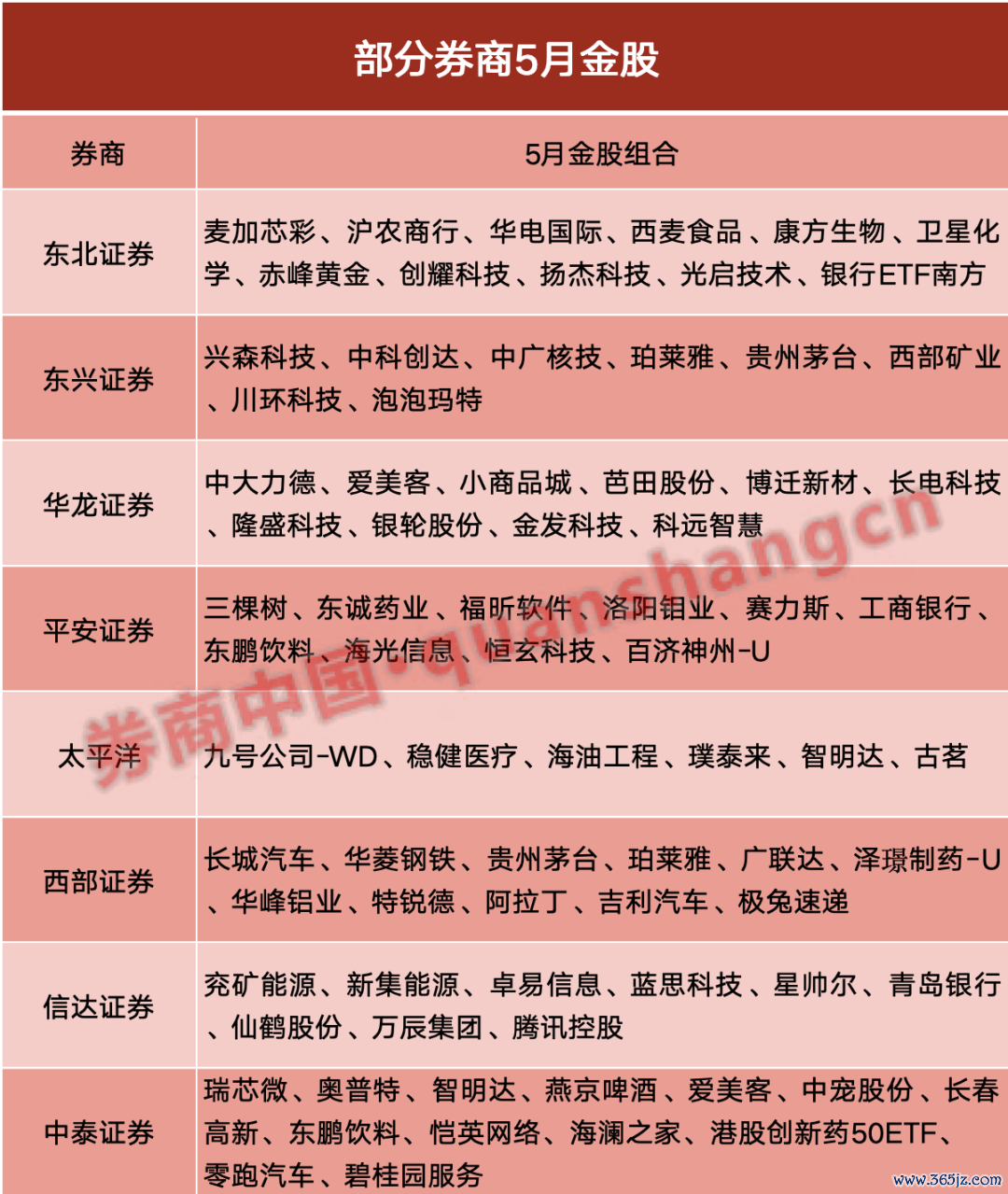随着4月股市交易收官国内配资炒股官网,各券商新一期的月度金股也陆续出炉。