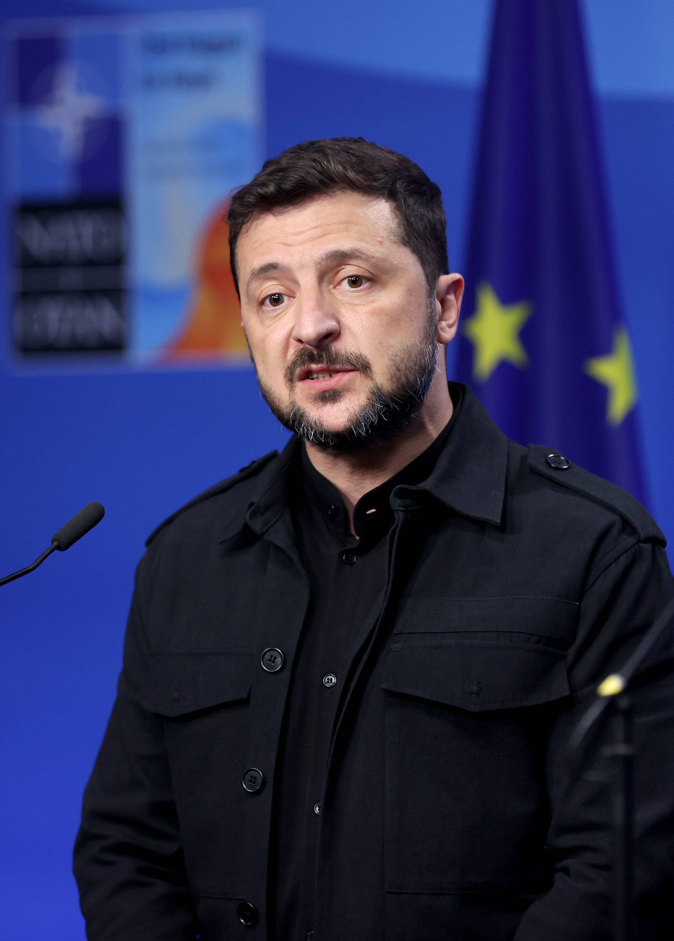 6月24日,在荷兰海牙,乌克兰总统泽连斯基在北约峰会期间对记者讲话。新华社记者赵丁喆摄希望与普京直接谈