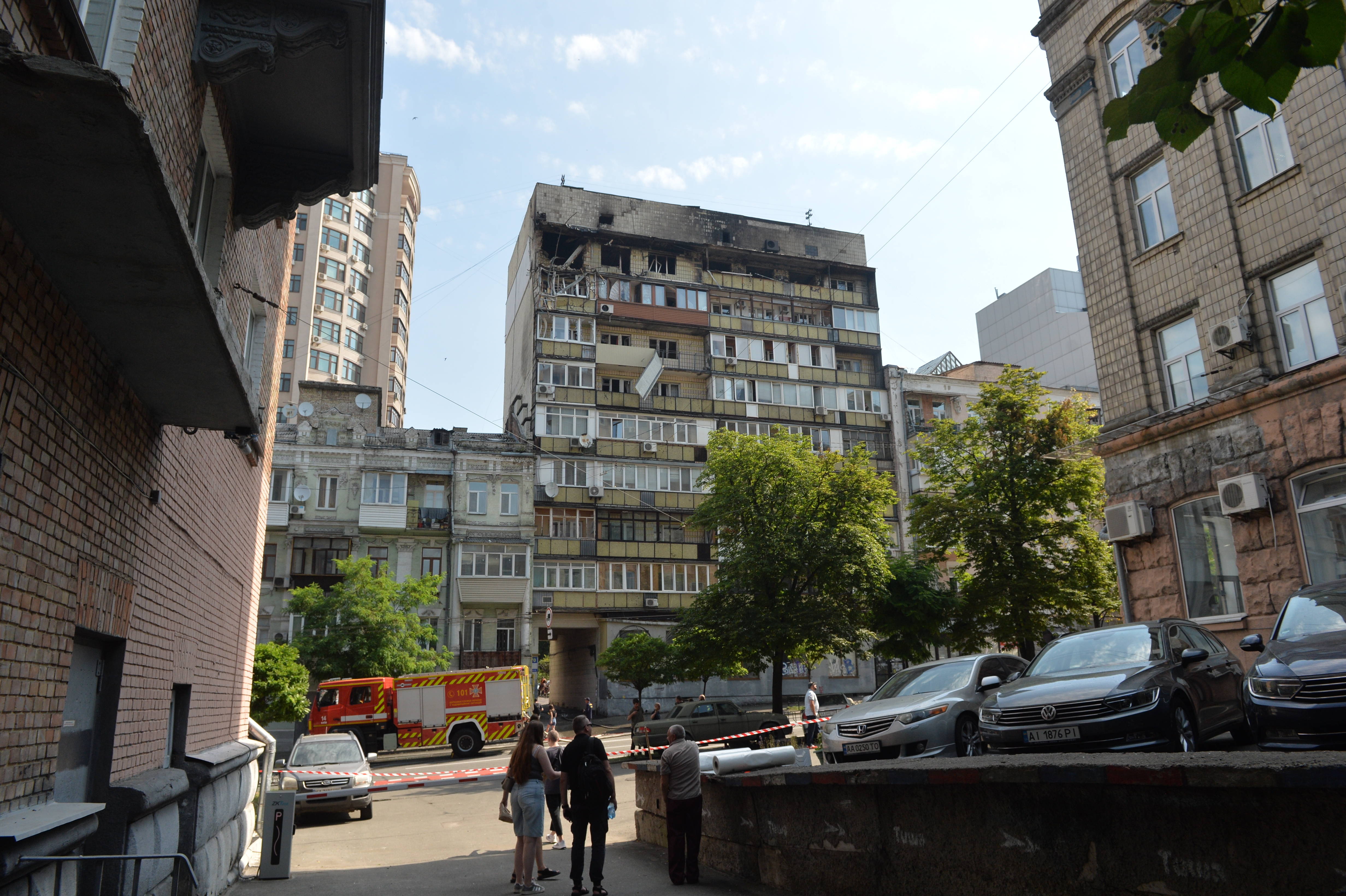 7月10日,乌克兰基辅市舍甫琴科夫斯基区一栋居民楼被无人机碎片击中后受损。新华社发(彼得·德鲁克摄)泽连斯基在社交媒体上发文说,俄罗斯发射了300多架无人机和30多枚巡航导弹。乌东北部苏梅州重要基础设施遭到破坏。