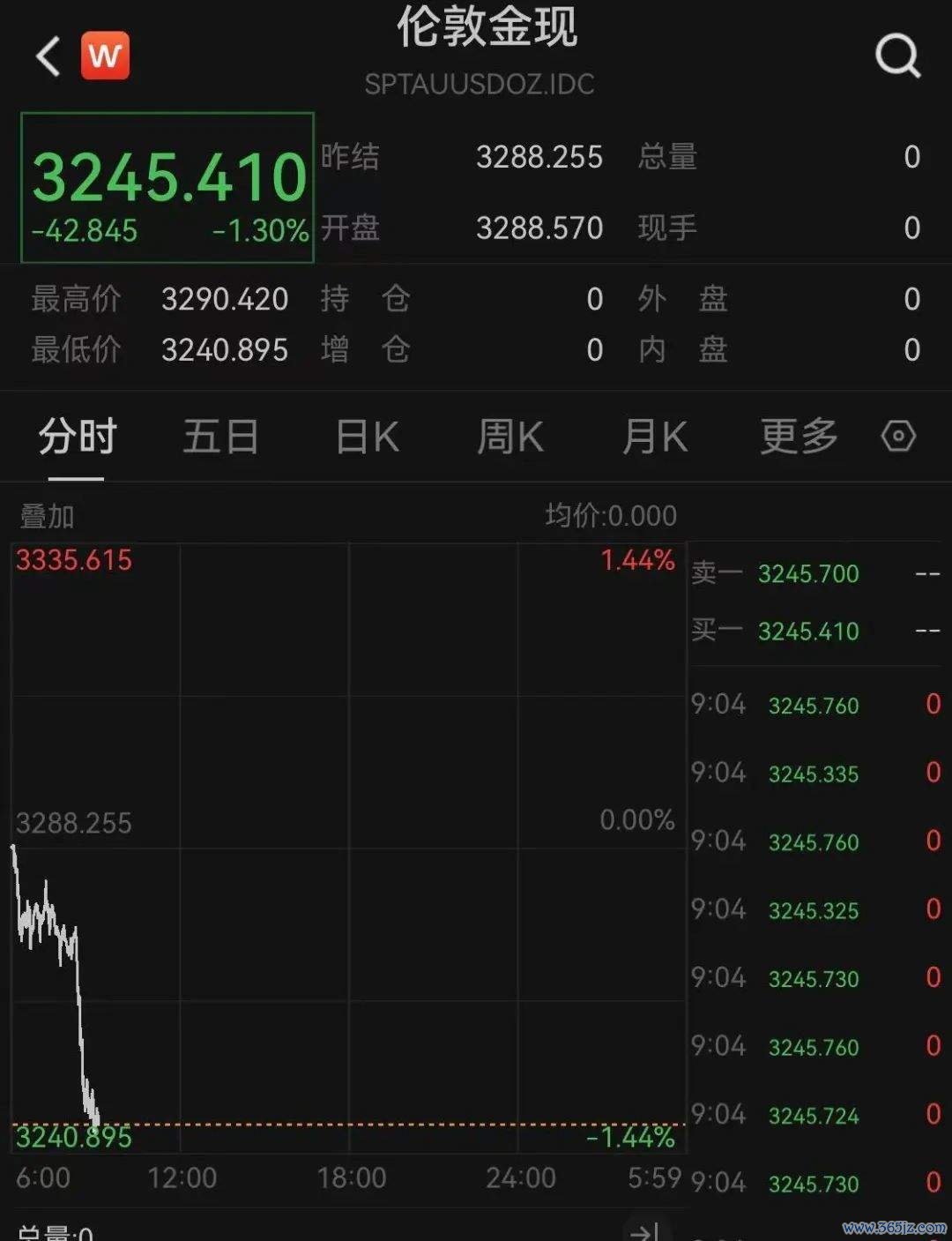 此外,黄金在今日也出现跳水。截至发稿,现货黄金跌破3250美元/盎司。